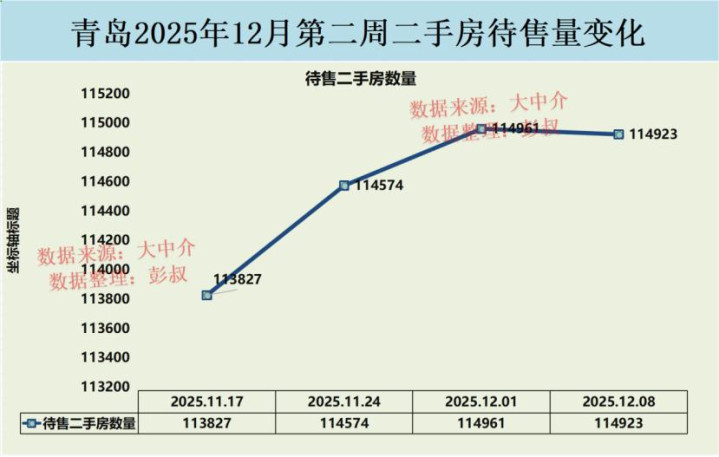 在当年的11月17日到12月8日,青岛楼市的待售二手房从113827套酿成了114923套,这个待售二手房照旧加多了1000来套的。